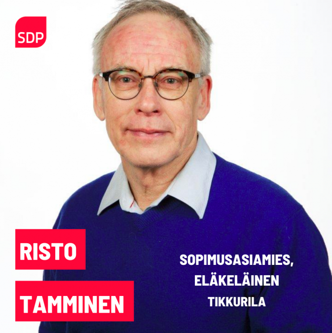 Risto Tamminen, sopimusasiamies, eläkeläinen, Tikkurila.