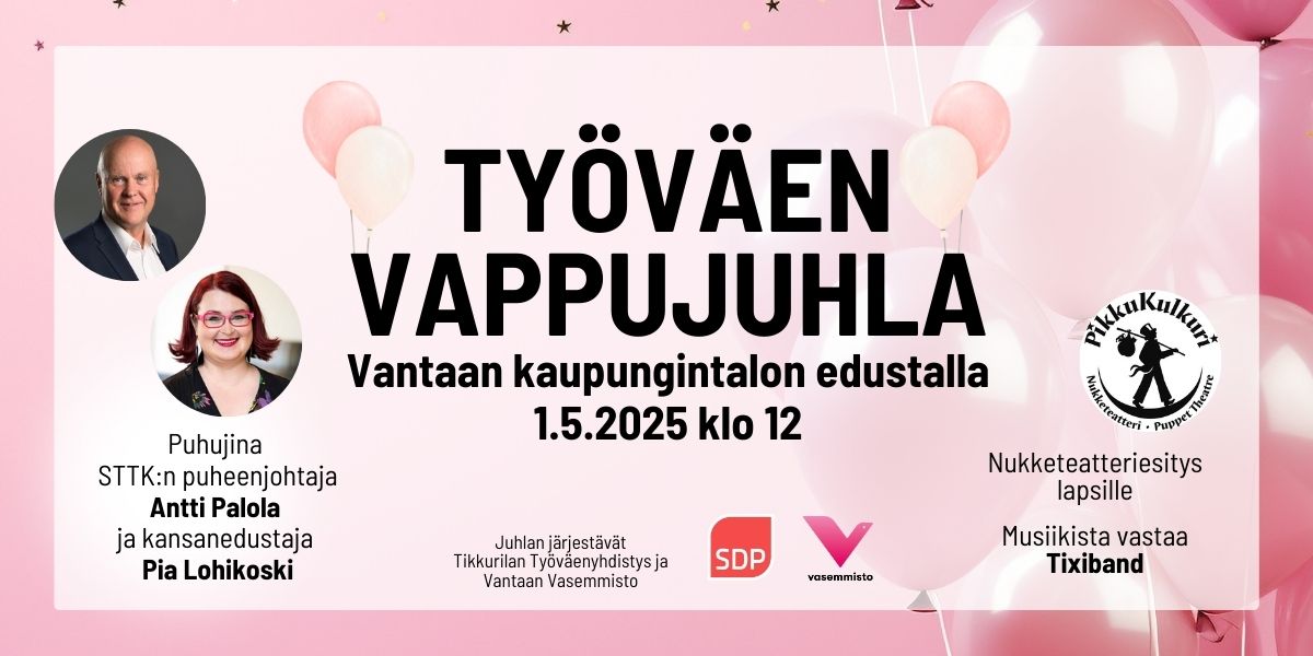 Perinteinen vapputapahtuma järjestetään yhteistyössä Vantaan Vasemmistoliiton kanssa. Tapahtumassa puhuu STTK:n puheenjohtaja Antti Palola sekä kansanedustaja Pia Lohikoski ja tilaisuuden musiikista vastaa TixiBand.